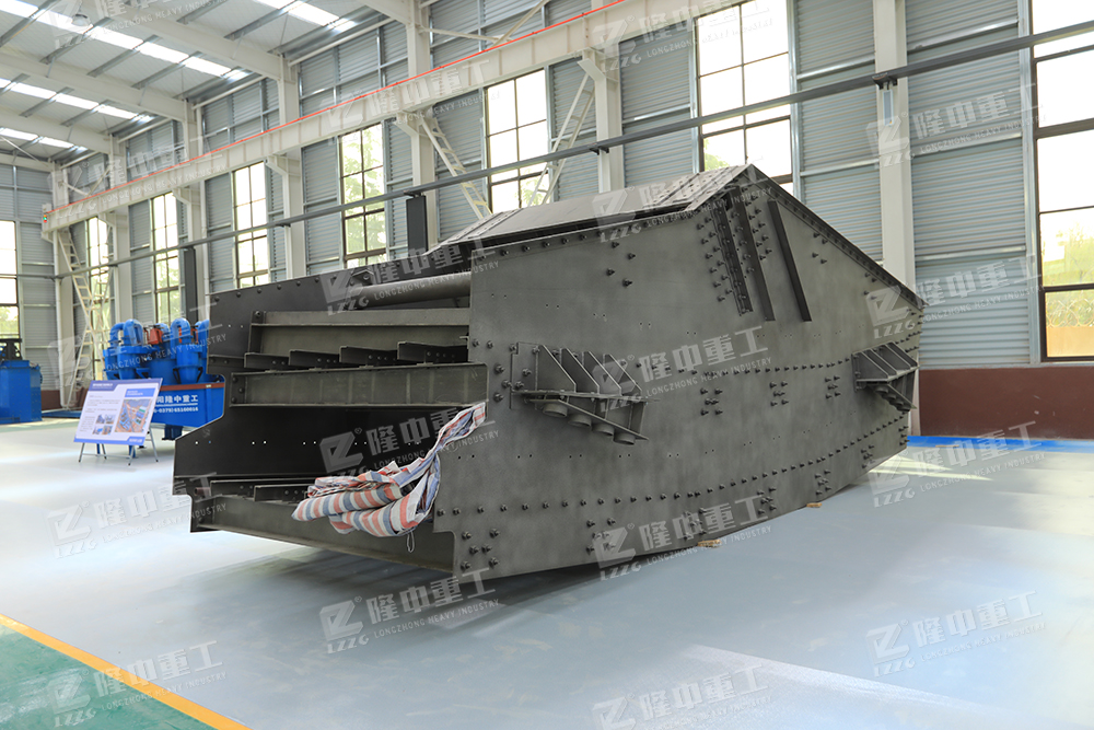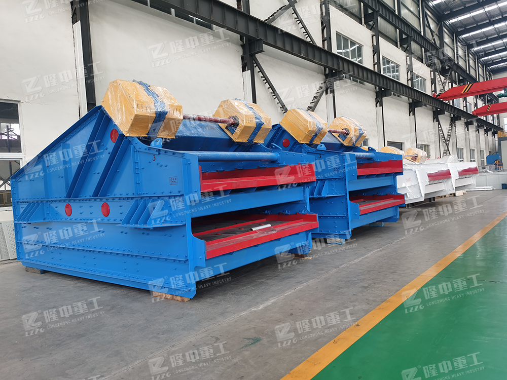 香蕉振動篩在入料端有一斜坡面,先以34°開始,緊接著角度下降到大約為10°的出料端為止。篩面采用不同傾角的折線形式,從入料端到出料端物料層厚度是不變。各段篩面上物料量與流速比值穩(wěn)定、料層較高,呈現(xiàn)均勻狀態(tài)篩分效率顯著提高,比相同有效面積篩分機(jī)的處理量提高1-2倍,對于細(xì)粒含量高,特別是物料中料度占分級粒度尺寸小于1/2的物料含量較大時,香蕉型振動篩分機(jī)具有較高的篩分效率。